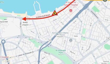 Street Closure Kuwait കുവൈത്ത് സിറ്റി: റോഡ് അറ്റകുറ്റപ്പണികൾക്കായി അറേബ്യൻ ഗൾഫ് സ്ട്രീറ്റ് ഭാഗികമായി അടച്ചിടുന്നതായി ജനറൽ ട്രാഫിക് വകുപ്പ് അറിയിച്ചു. സെക്കൻഡ് റിങ് റോഡുമായുള്ള കവലയിൽ നിന്ന് കുവൈത്ത് സൊസൈറ്റി ഓഫ് എഞ്ചിനീയേഴ്സിന് സമീപമുള്ള കവല വരെ വലത് പാതയും മധ്യ പാതയുടെ പകുതിയും അടച്ചിടും. അറ്റകുറ്റപ്പണികൾ നടക്കുന്നതിനാൽ ജനുവരി 12 തിങ്കളാഴ്ച മുതൽ ജനുവരി 15 വ്യാഴാഴ്ച വരെ അടച്ചിടൽ പ്രാബല്യത്തിൽ ഉണ്ടാകും.